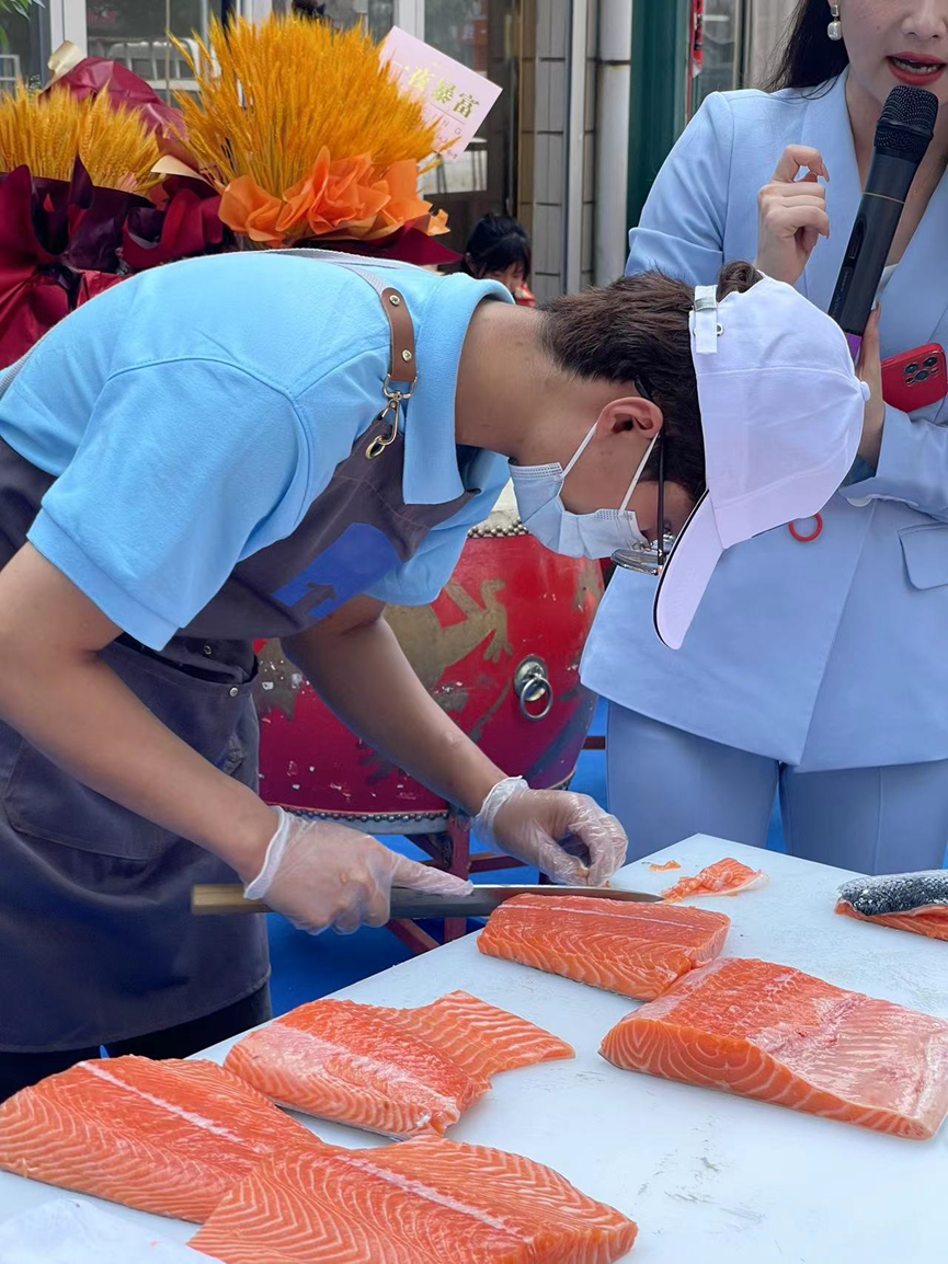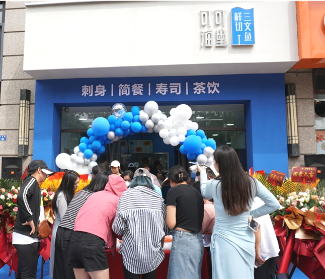 不久前開業的煙臺牟平店,開業時也在當地引起了轟動。當天,數百名消費者聚集在新店門口,迫不及待體驗新鮮的三文魚等新鮮料理食材。現場的開魚儀式更是將開業活動推向的高潮,豐富多樣的鮮切料理和超值的優惠活動讓到場的“吃貨”滿意而歸。