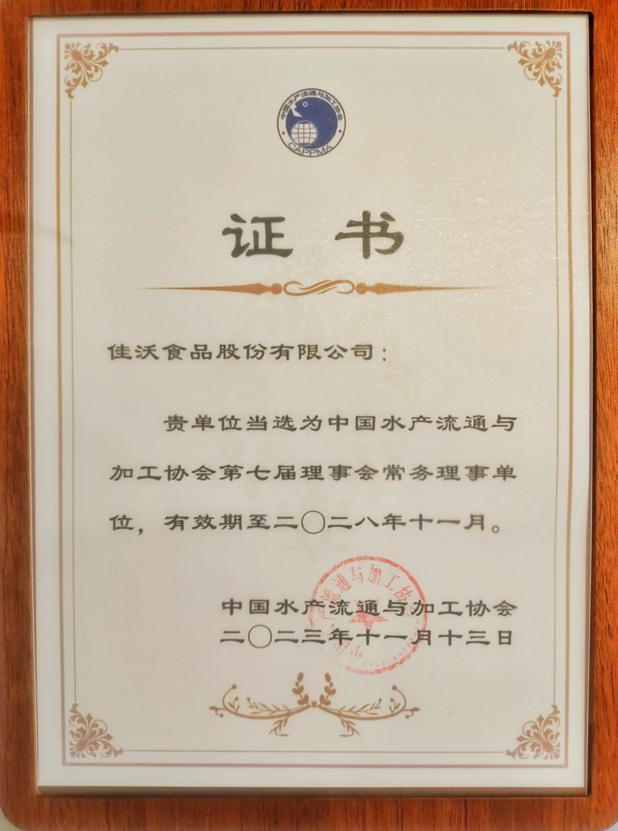 大會(huì)同期召開(kāi)七屆一次理事會(huì),選舉產(chǎn)生新一屆會(huì)長(zhǎng)、副會(huì)長(zhǎng)、常務(wù)理事、秘書(shū)長(zhǎng)。佳沃食品受邀參會(huì),并當(dāng)選中國(guó)水產(chǎn)流通與加工協(xié)會(huì)第七屆理事會(huì)常務(wù)理事單位。