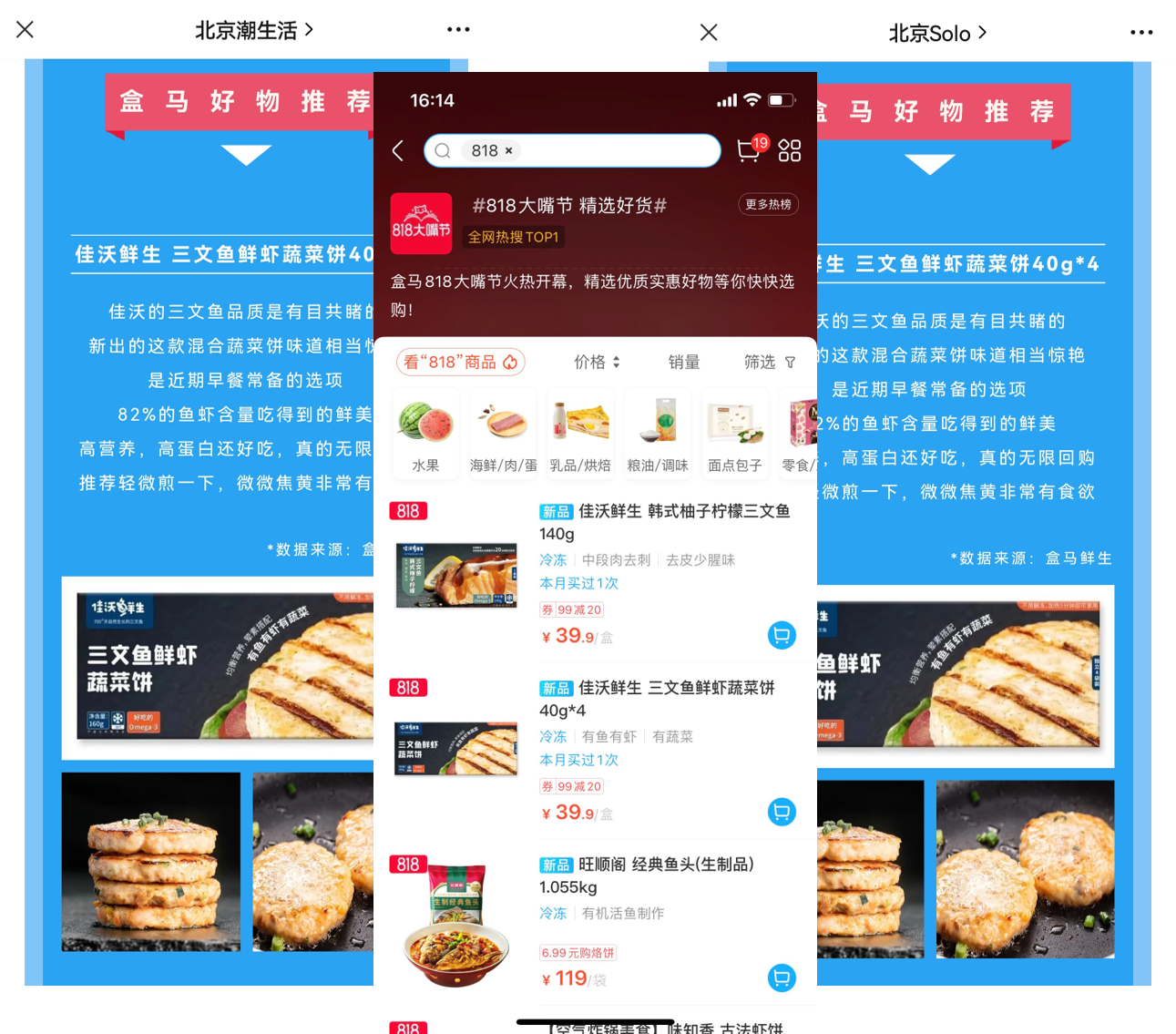 7月剛剛面市的佳沃鮮生“韓式柚子檸檬三文魚”和“三文魚鮮蝦蔬菜餅”兩款三文魚預(yù)制菜品在開售首月便取得了亮眼的銷售表現(xiàn)。上市僅一個月,“三文魚鮮蝦蔬菜餅”便已斬獲盒馬鮮生調(diào)味食品新品榜的冠軍,而“韓式柚子檸檬三文魚”的銷售表現(xiàn)也始終穩(wěn)定在榜單前十名中!